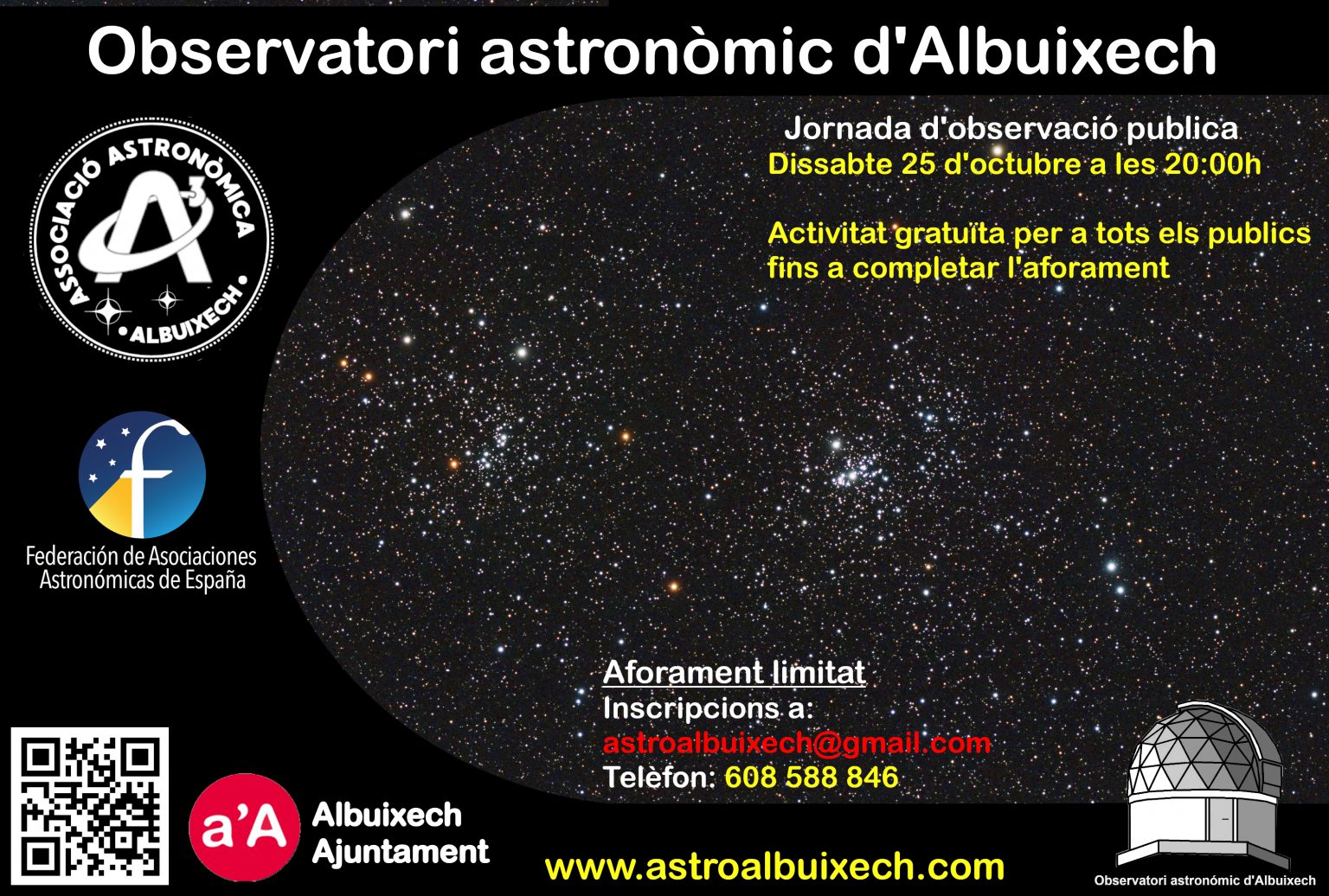 Abrimos 1 vez al mes las puertas de nuestras instalaciones para todo el público que quiera venir a disfrutar de una observación. Nuestros monitores se encargan de atender y resolver las dudas que puedan surgir durante la misma.